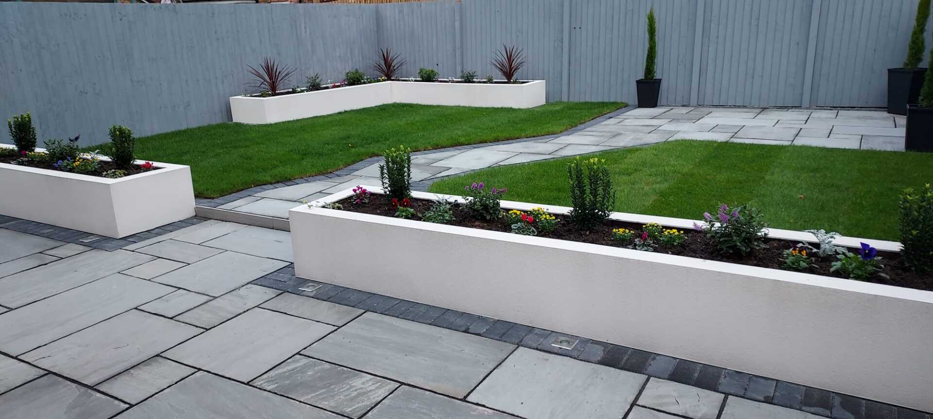At Evergreen Landscapes we often get asked to create beautiful planters to create garden features whilst adding variation to the levels, breaking up large areas. We build our planters to last by creating the perfect structure to achieve longevity. We do this by creating the foundations of the planter with concrete flags, levelled and set to create perfect lines that run parallel with the paving. The concrete is then lined and the chosen wood is built around the concrete. This method stops the wood from rotting and warping, ensuring the planters hold their shape and last a lifetime.