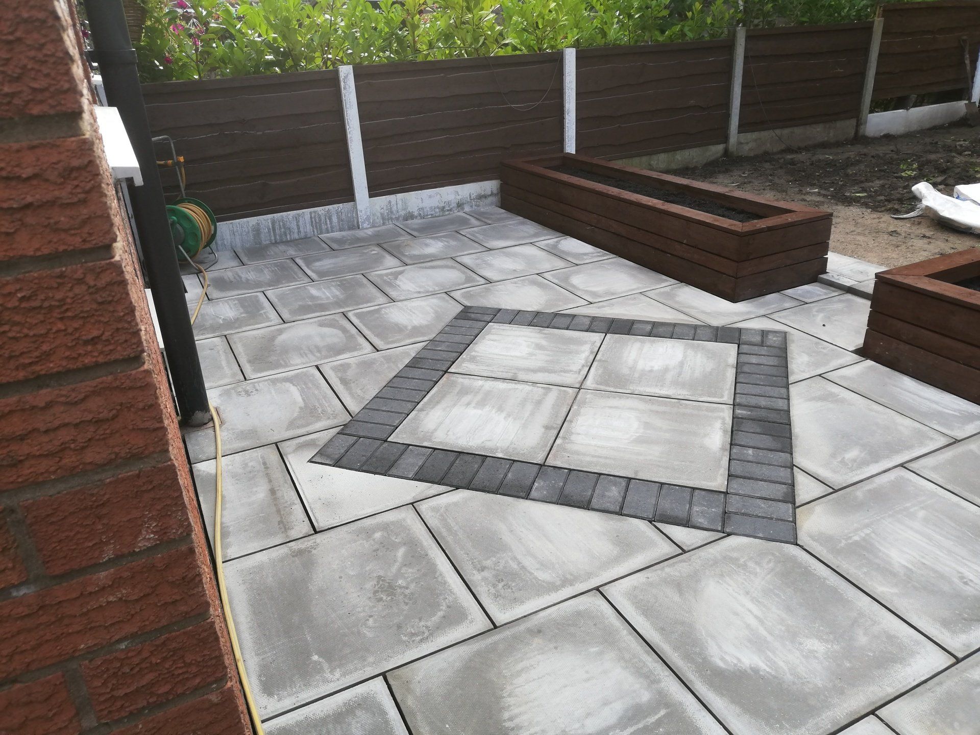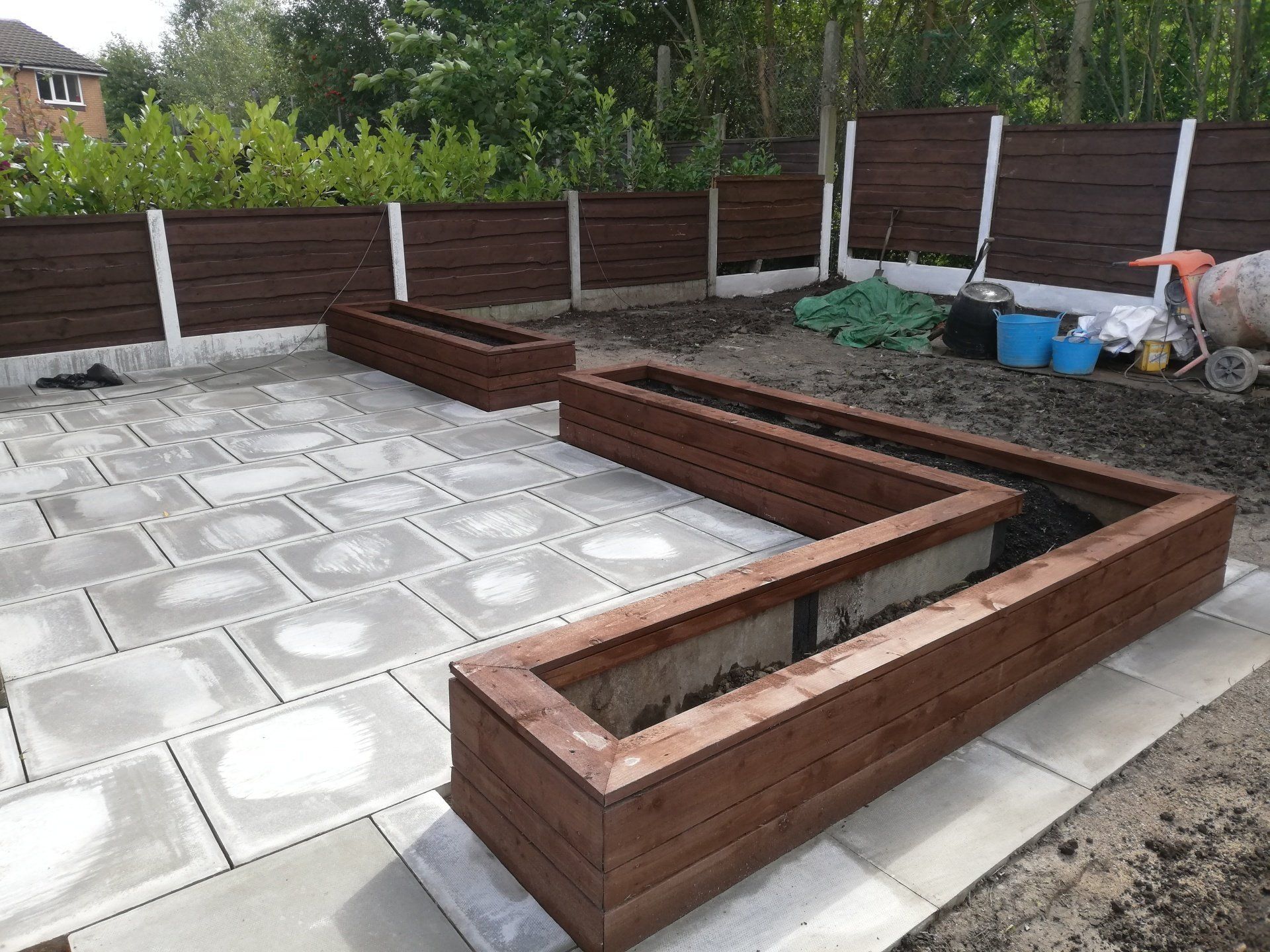 To build a sturdy planter that will stand the test of time it is essential to create a solid foundation. We use concrete flags upright which stop the timber from rotting over time.